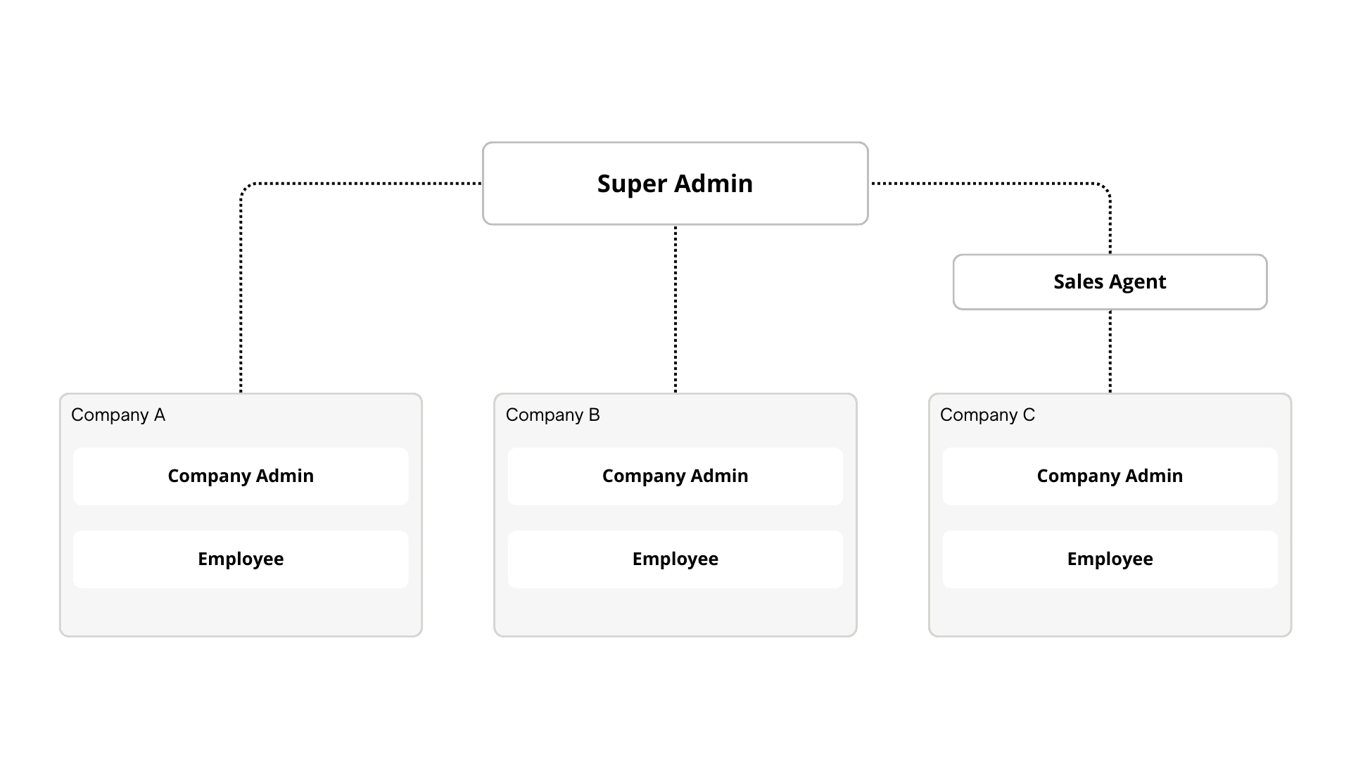 Hierarchical control across admins, agents, and companies