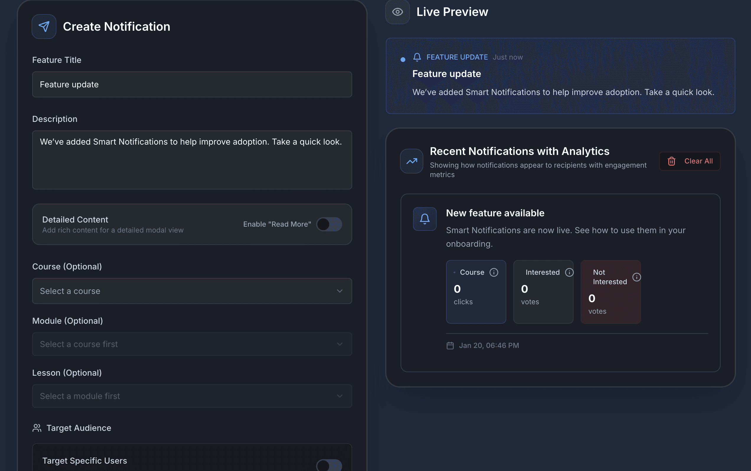Custom Notifications & Announcements